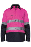 Ritemate (Mens) RM1050R - Hi Vis 2 Tone Open Front Long Sleeve with 3M Reflective Tape Shirt (Pink/Navy)