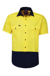 Ritemate (Mens) RM1050S - Hi Vis 2 Tone Open Front Short Sleeve Shirt (Yellow/Navy)