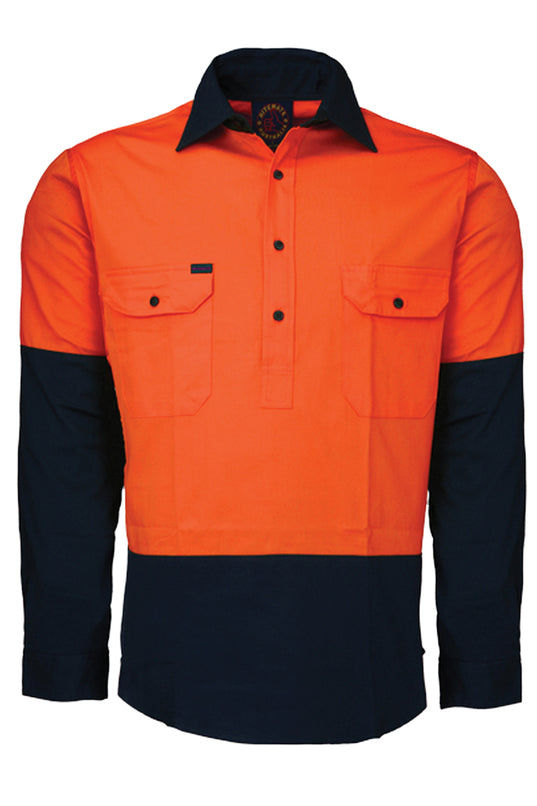 Ritemate (Mens) RM105CF - Hi Vis 2 Tone Closed Front Long Sleeve Shirt (Orange/Navy) - 5% Off - Chainsaw Mates Rates