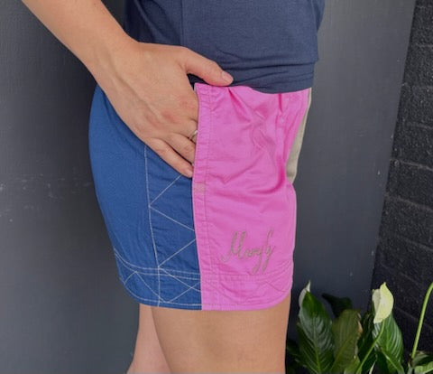 MaryG - Classic Australian Cotton - Harlequin Neon Pink | Beige | Denim Short
