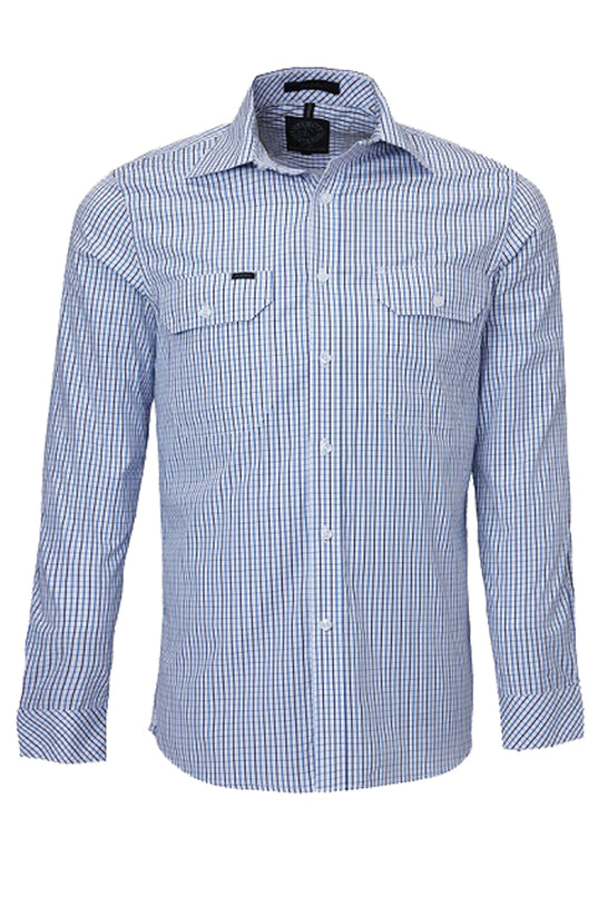 Pilbara (Mens) RMPC011 - Dual Pocket Long Sleeve Shirt (Blue/Navy/White Check) - 5% Off - Chainsaw Mates Rates