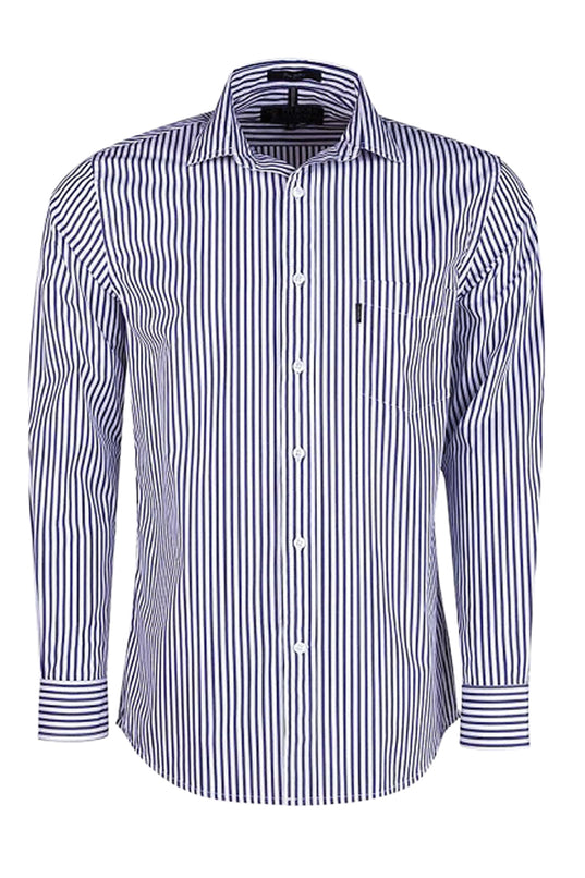 Pilbara (Mens) RMPC012 - Single Pocket Long Sleeve Shirt (Navy/White Stripe) - 5% Off - Chainsaw Mates Rates