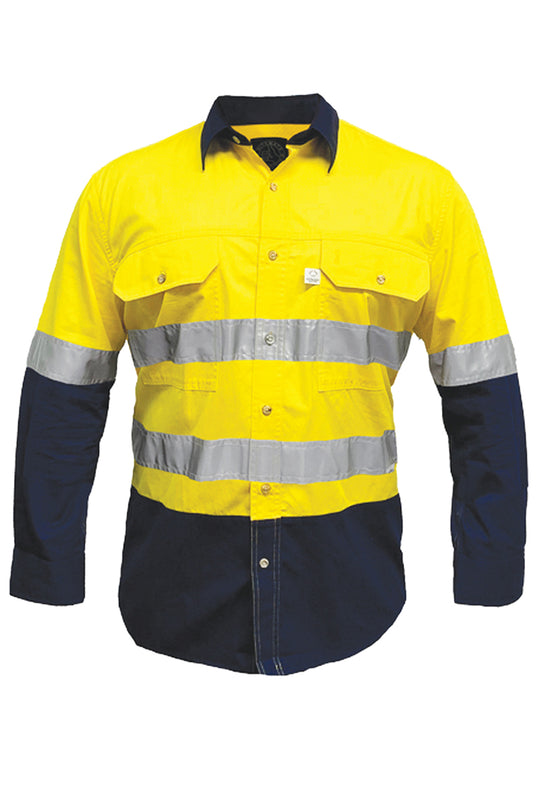 Australian Cotton Hi Vis Tape Workshirt - Yellow/Navy