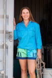 MaryG - Old School Australian Cotton Spearmint | Sky Blue | Peach | Yellow | Denim Panel Short