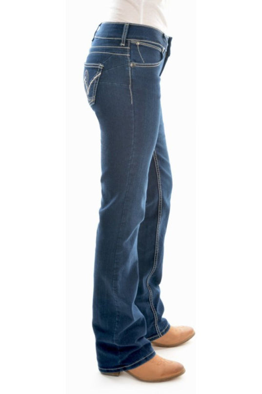 Classic mid rise jeans that are built for comfort. Decorative pocket styling with embroidered detail for a bit of extra flair!