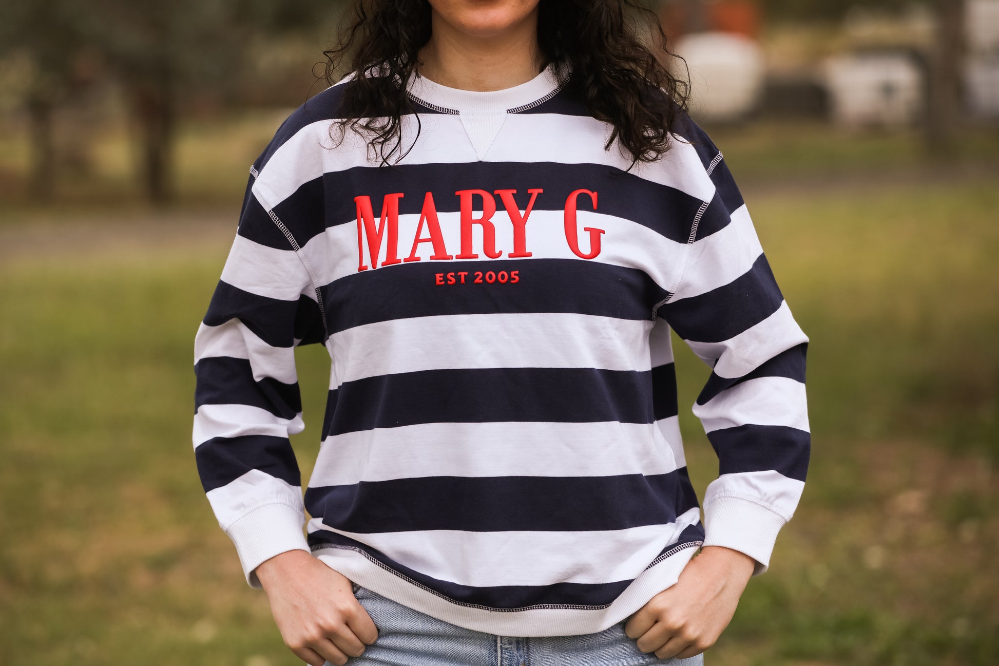 MaryG - (Womens) Crew Neck Sweatshirt (French Navy | White)